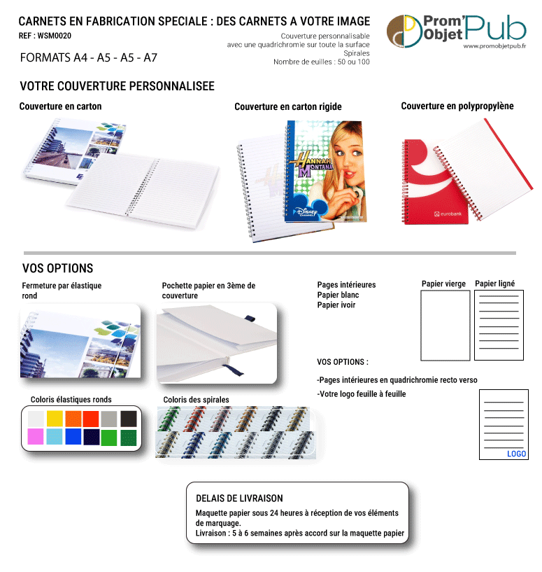 Fabrication spéciale - Carnets de notes A5 à spirale couverture carton rigide
